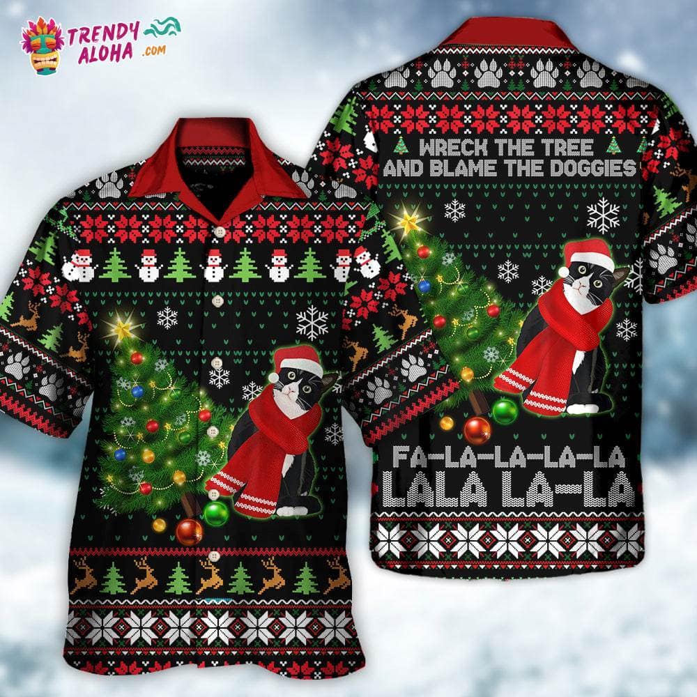 You’re viewing Cat Wreck The Tree Happy Ugly Style Christmas Hawaiian Shirt – Trendy KLA.