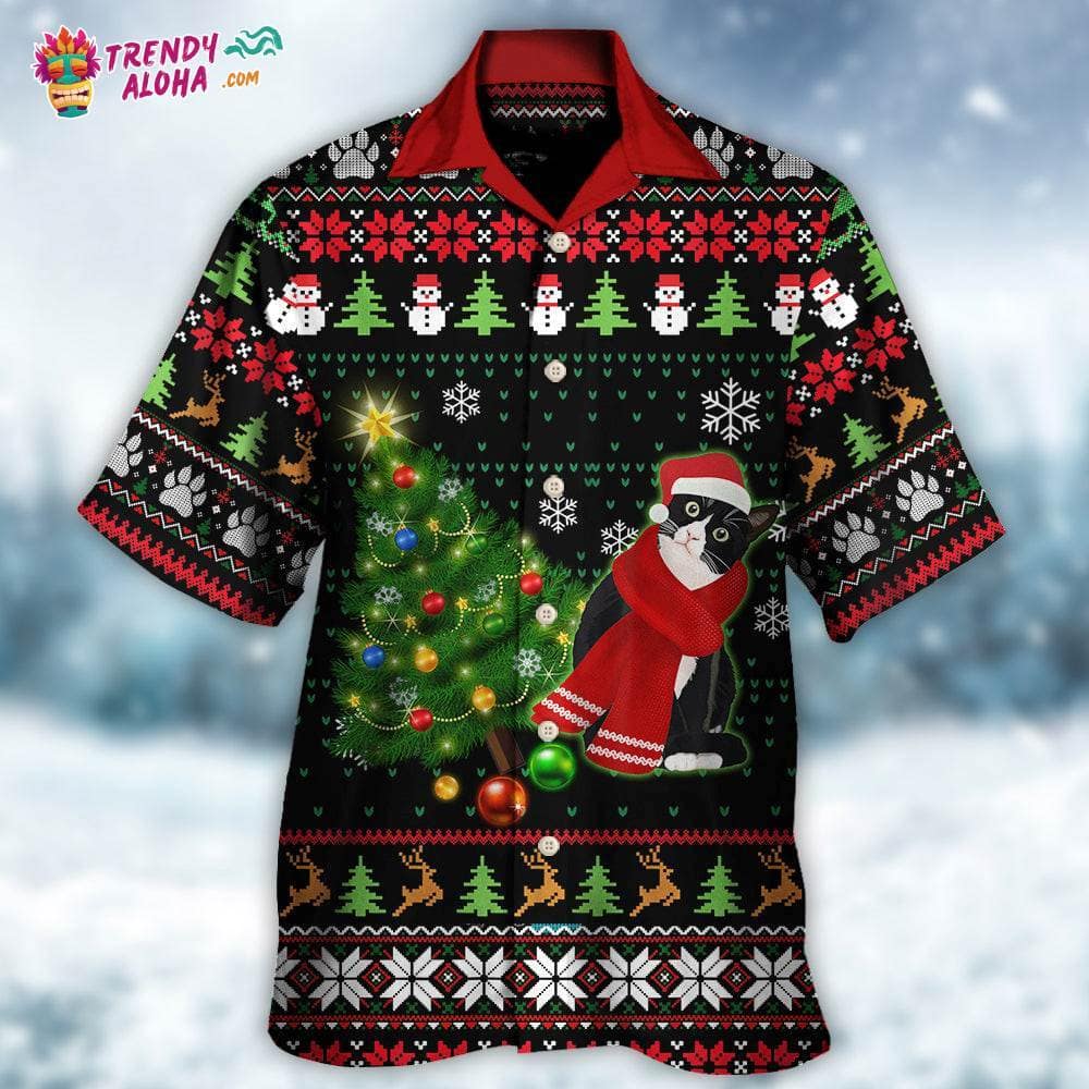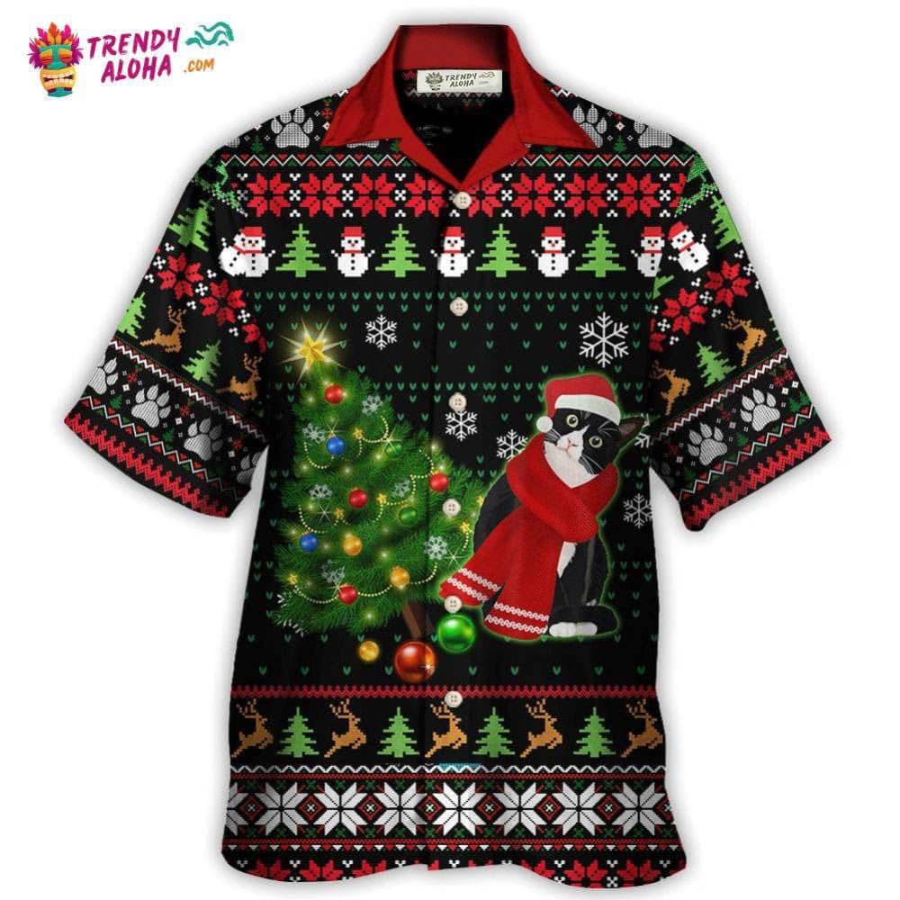 Black Cat Wreck The Tree Light Funny Ugly Style Christmas Hawaiian Shirt – Trendy KLA