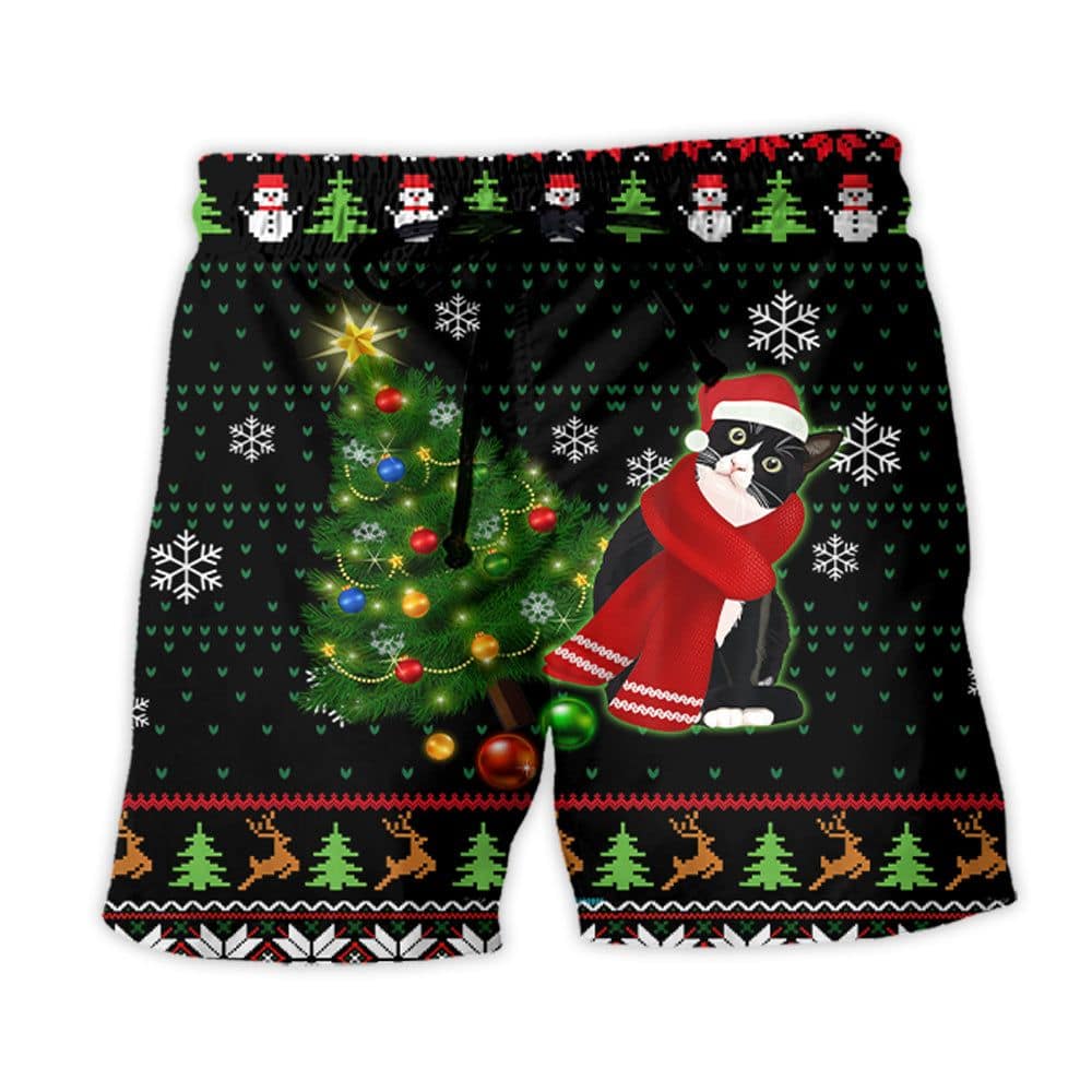 Cat Wreck The Tree Happy Ugly Style Christmas Trendy KLA Hawaiian Beach Shorts