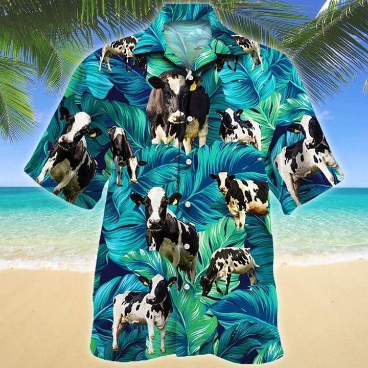 You’re viewing Cattle Trendy Hawaiian Shirt Green Holstein Friesian, Cow Trendy Hawaiian Shirt For Summer Gifts.