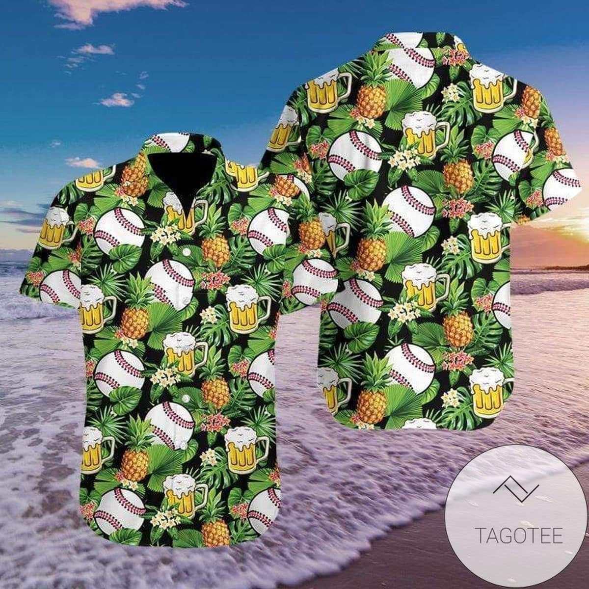 Celebrating the Union of Baseball and Beer on Tropical Hawaiian Shirt
