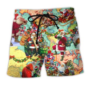 Chirstmas Love Santa Style Trendy KLA Hawaiian Beach Shorts