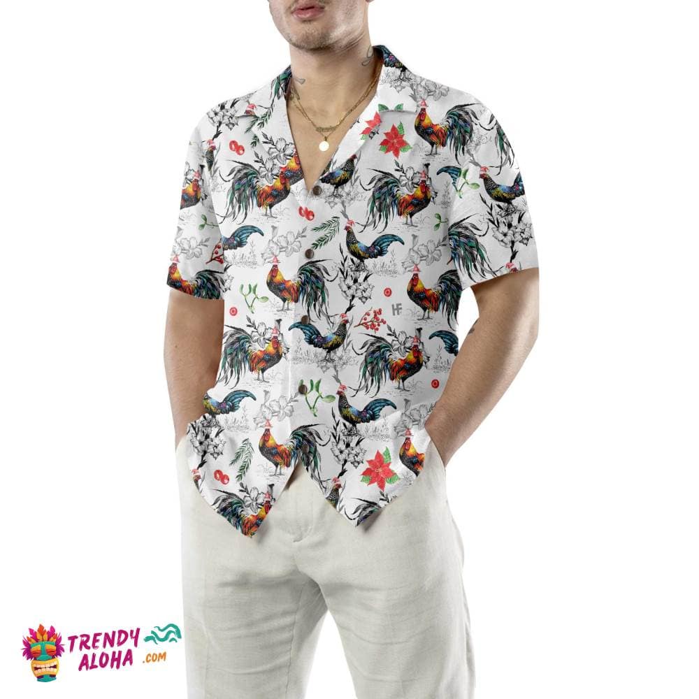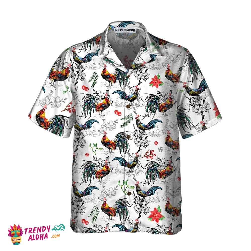 You’re viewing Christmas Chicken With Poinsettia Flower Hawaiian Shirt, Tropical Christmas Shirt For Men.