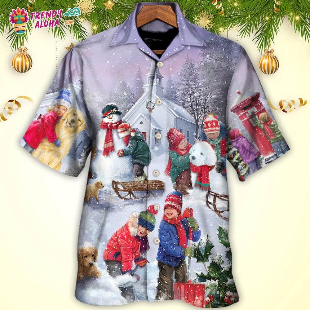 Christmas Children Love Christmas Chilling With Homie Art Style Hawaiian Shirt – Trendy KLA