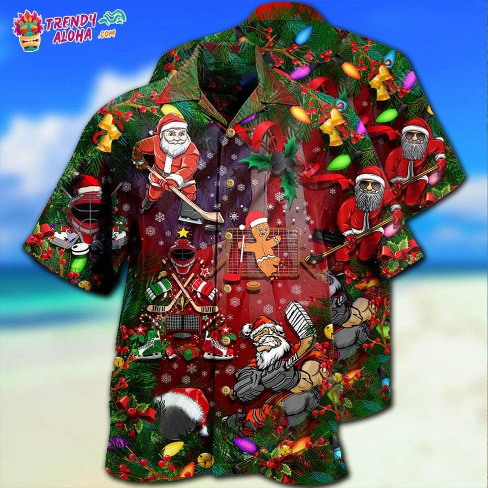 You’re viewing Christmas Come On Play Hockey With Santa Claus And Reindeer So Nice Hawaiian Shirt – Trendy KLA.