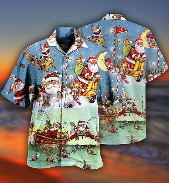 Christmas Cute Santa Claus Go Fishing – Hawaiian Shirt