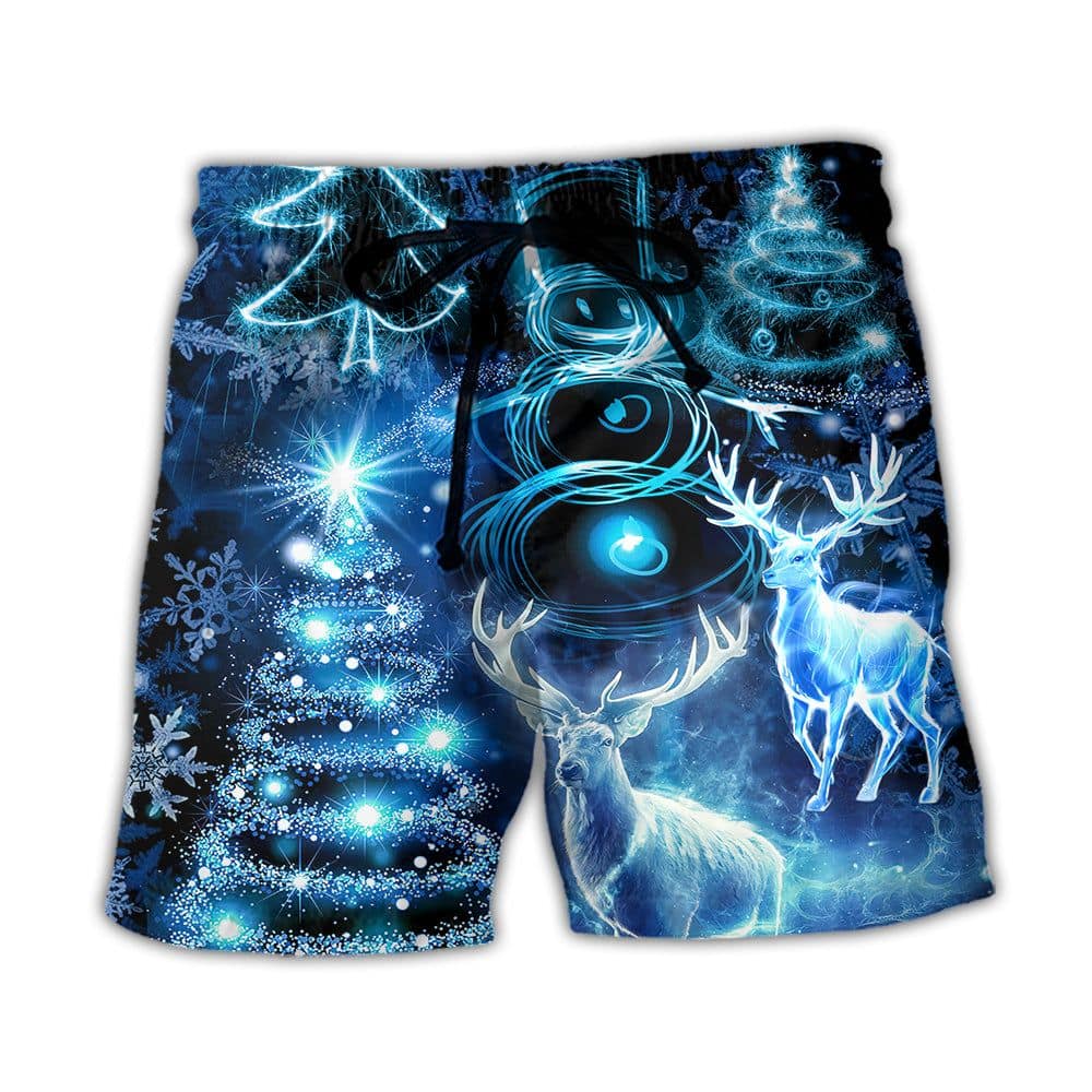 Christmas Deer Snowman Tree Glow Light Style Trendy KLA Hawaiian Beach Shorts