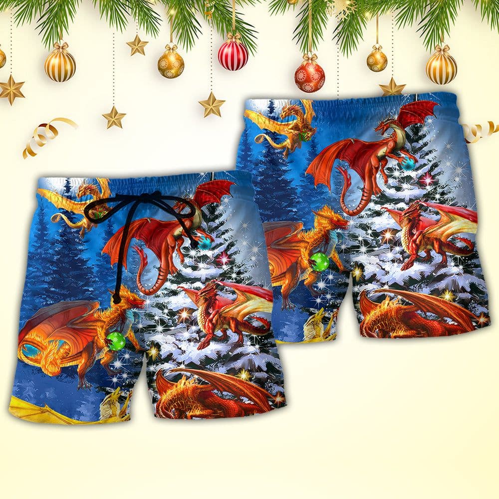 Christmas Dragon Family In Love Light Art Style Trendy KLA Hawaiian Beach Shorts
