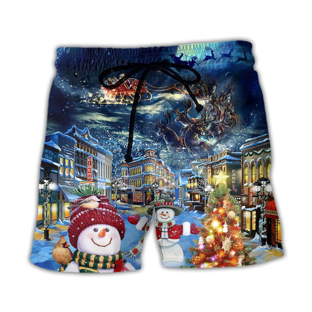 Christmas Family Snowman Santa Claus In Love Light Art Style Trendy KLA Hawaiian Beach Shorts