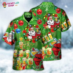 Christmas Funny Santa Claus Drinking Beer Happy Christmas Tree Green Light Hawaiian Shirt – Trendy KLA