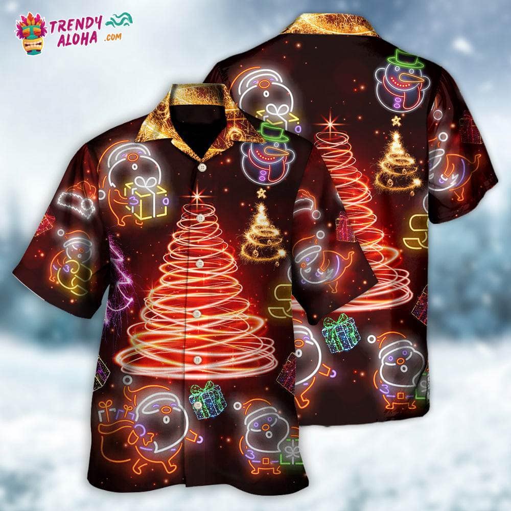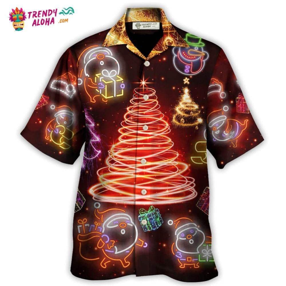 Christmas Funny Santa Claus Tree Red Neon Light Style Hawaiian Shirt – Trendy KLA