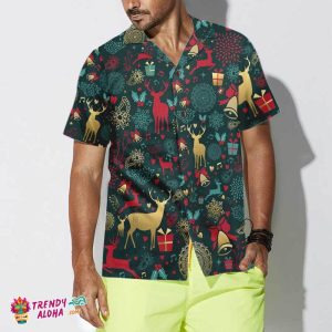 You’re viewing Christmas Golden Deer Pattern Hawaiian Shirt, Christmas Reindeer Shirt, Best Xmas Gift Idea.