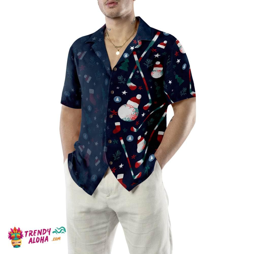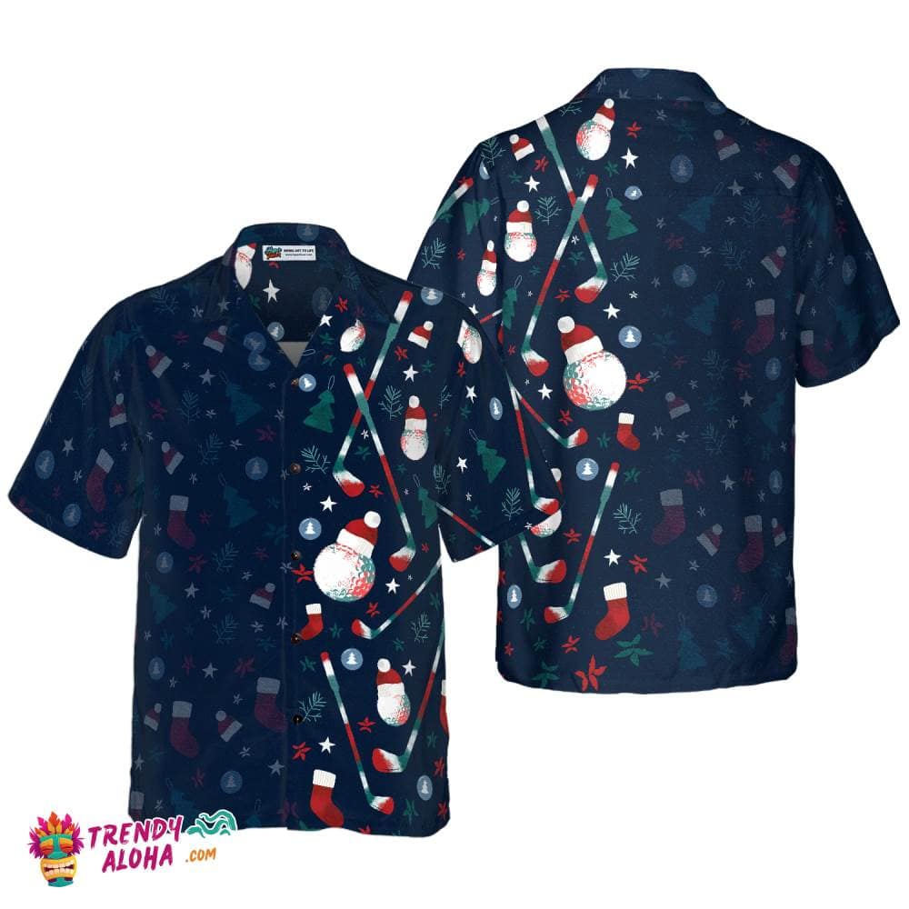 Christmas Golf Pattern Hawaiian Shirt, Christmas Shirts Short Sleeve Button Down Shirt For Men And Women