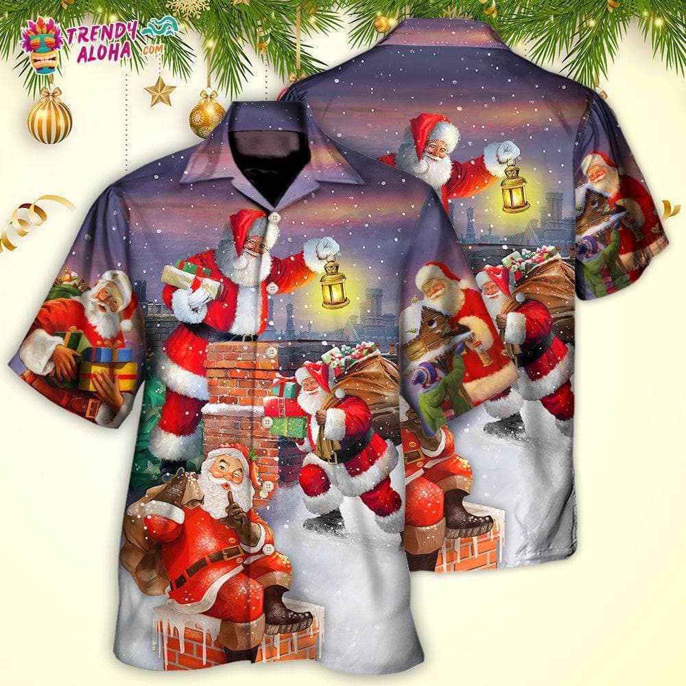 Christmas Having Fun With Santa Claus Gift For Xmas Art Style Hawaiian Shirt – Trendy KLA