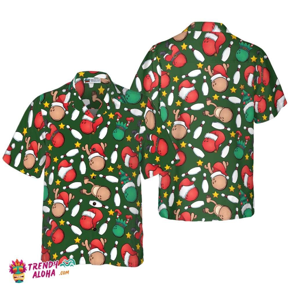 Christmas Hawaiian Shirts, Christmas Bowling Pattern Shirt Short Sleeve, Christmas Shirt Idea Gift For Men And Women