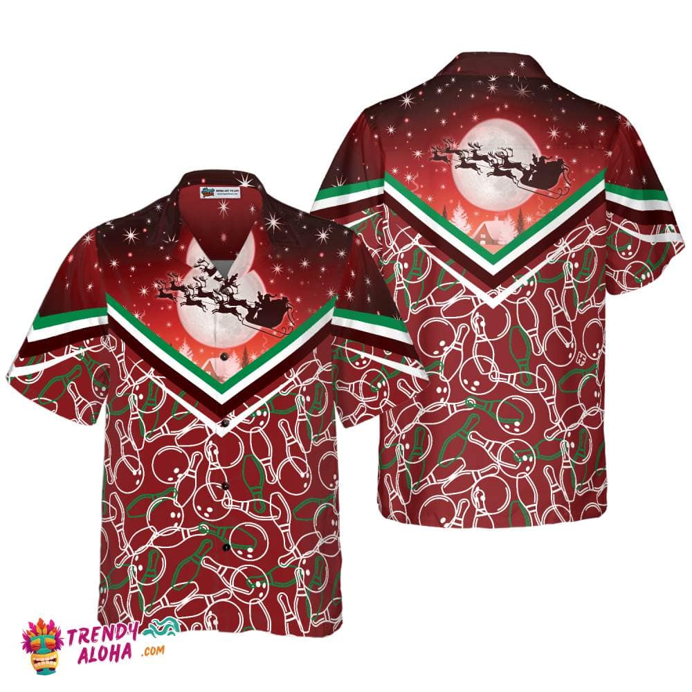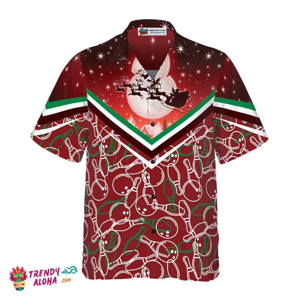 Christmas Bowling Pattern Shirt, Xmas Trendy Hawaiian Shirt Perfect Gifts For Your Loved Ones