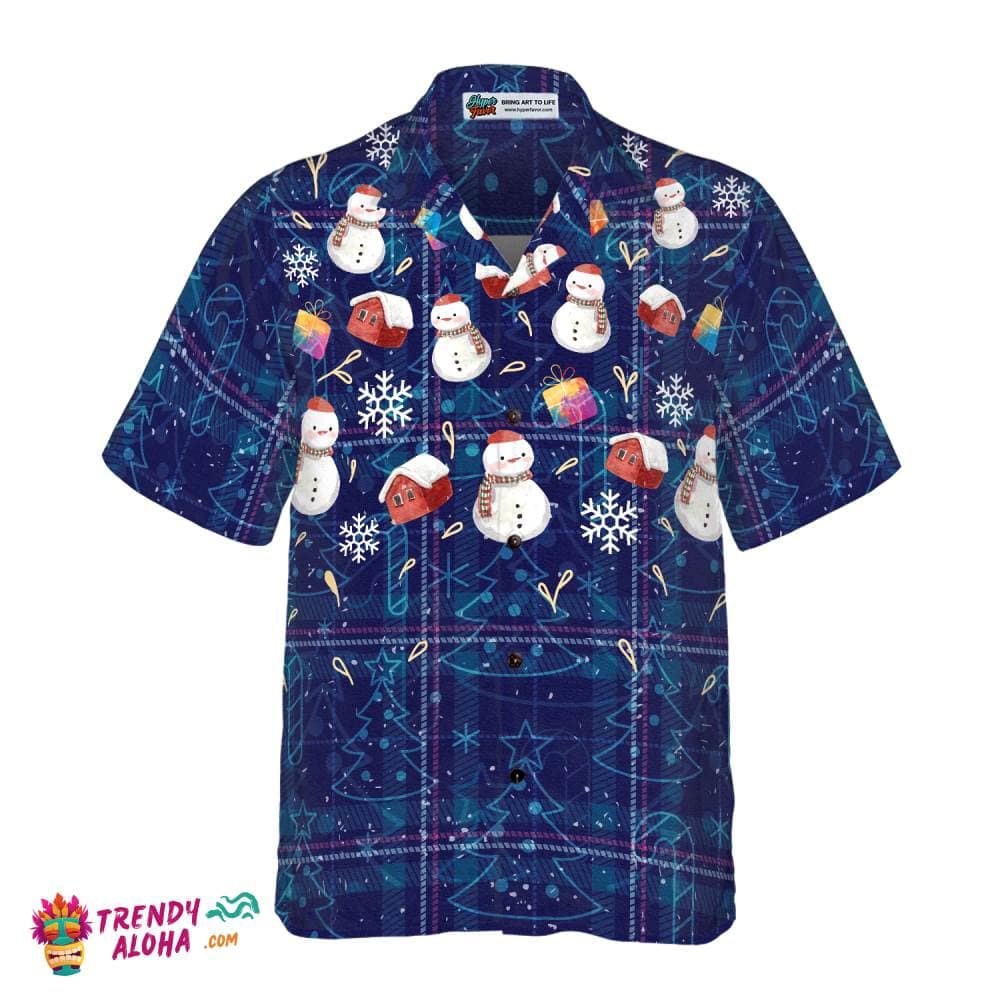 You’re viewing Christmas Hawaiian Shirts, Christmas Snowman Dark Blue Plaid Pattern Shirt Short Sleeve, Christmas Shirt Idea Gift For Men And Women.