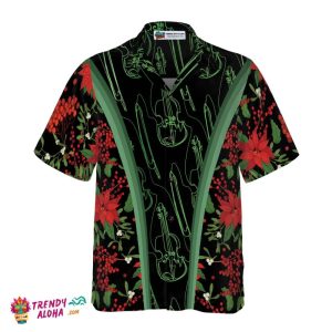 Christmas Hawaiian Shirts, Chritmas Violin Music Pattern Shirt Short Sleeve, Christmas Shirt Idea Gift For Men And Women
