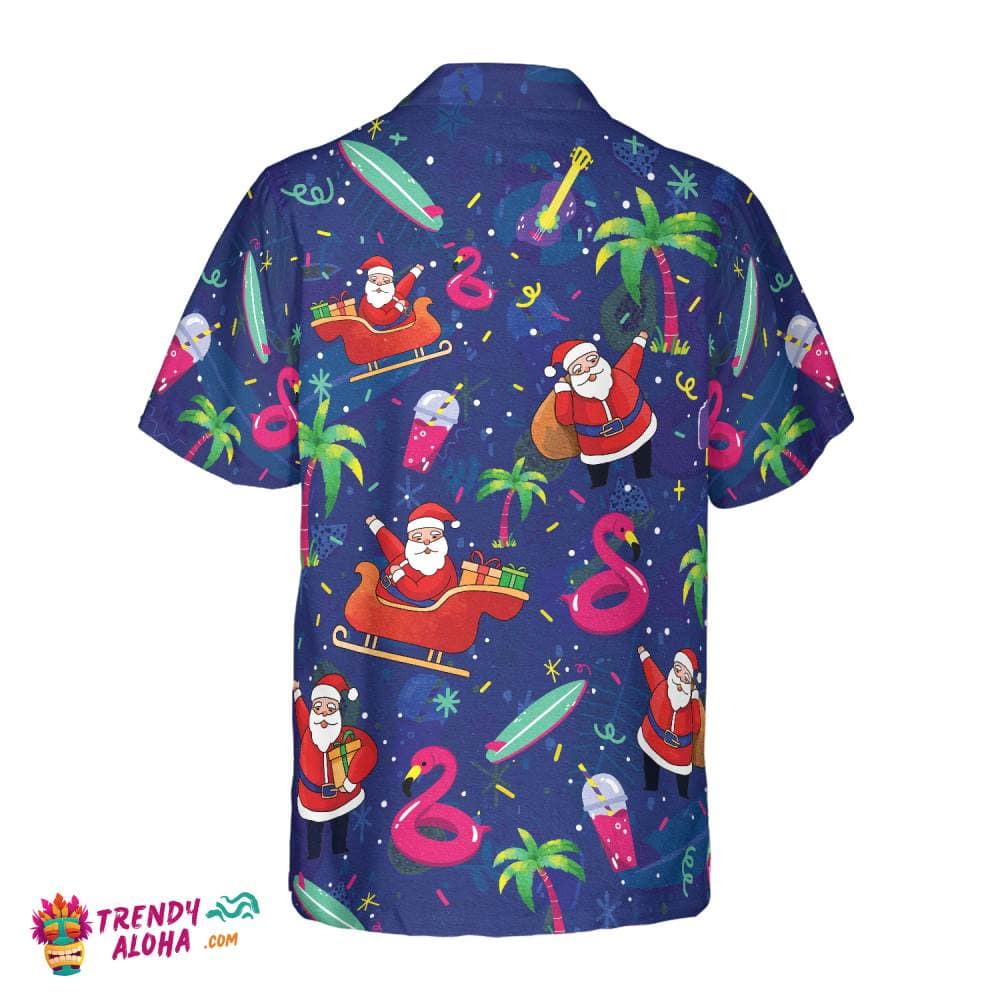 Christmas Hawaiian Shirts, Santa Flamingo Tropical Pattern Shirt Short Sleeve, Christmas Shirt Idea Gift For Men And Women
