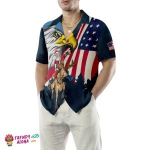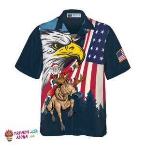 You’re viewing Christmas Hawaiian Shirts, Santa With American Flag 2 Shirt Short Sleeve, Christmas Shirt Idea Gift For Men And Women.
