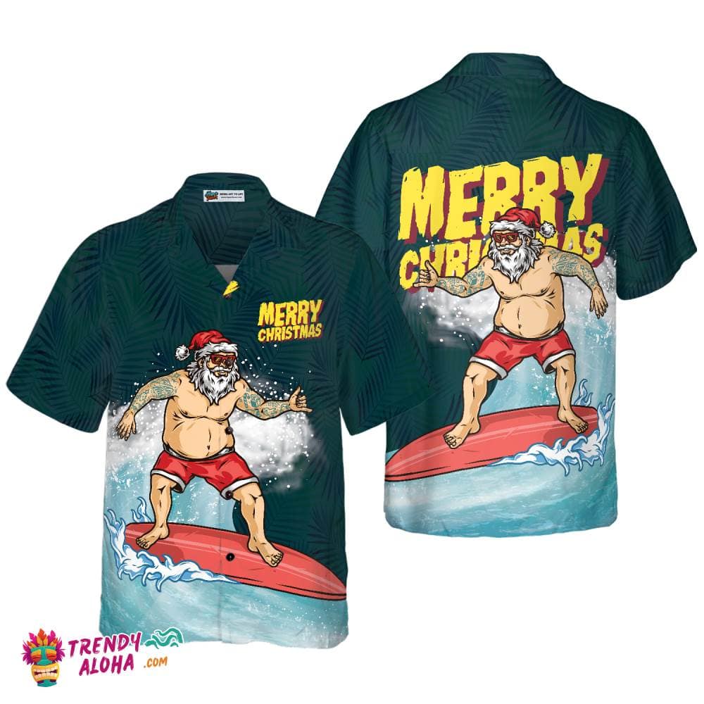 Christmas Hawaiian Shirts, Surfing Santa Claus Merry Christmas Shirt Short Sleeve, Christmas Shirt Idea Gift For Men And Women