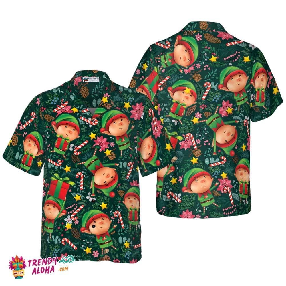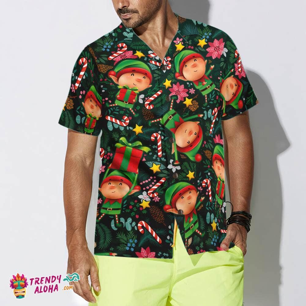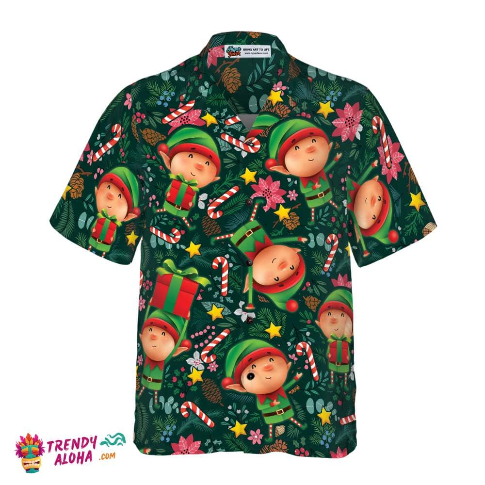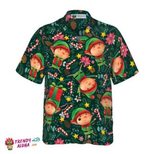 You’re viewing Christmas Hawaiian Shirts, The Christmas Elf With Dark Green Pattern Shirt Short Sleeve, Christmas Shirt Idea Gift For Men And Women.