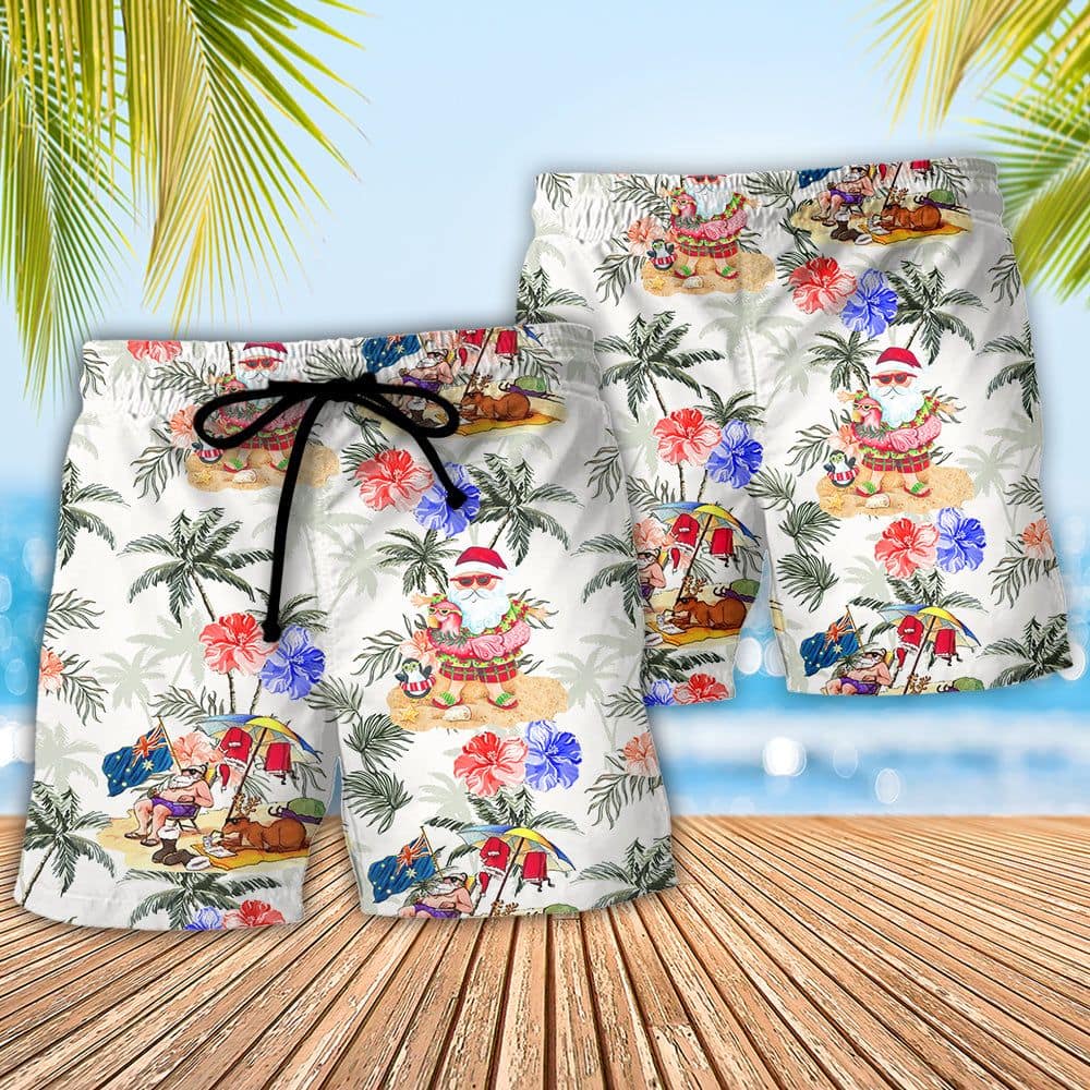 Christmas In July Santa Enjoy Time For Some Beach Therapy Trendy KLA Hawaiian Beach Shorts
