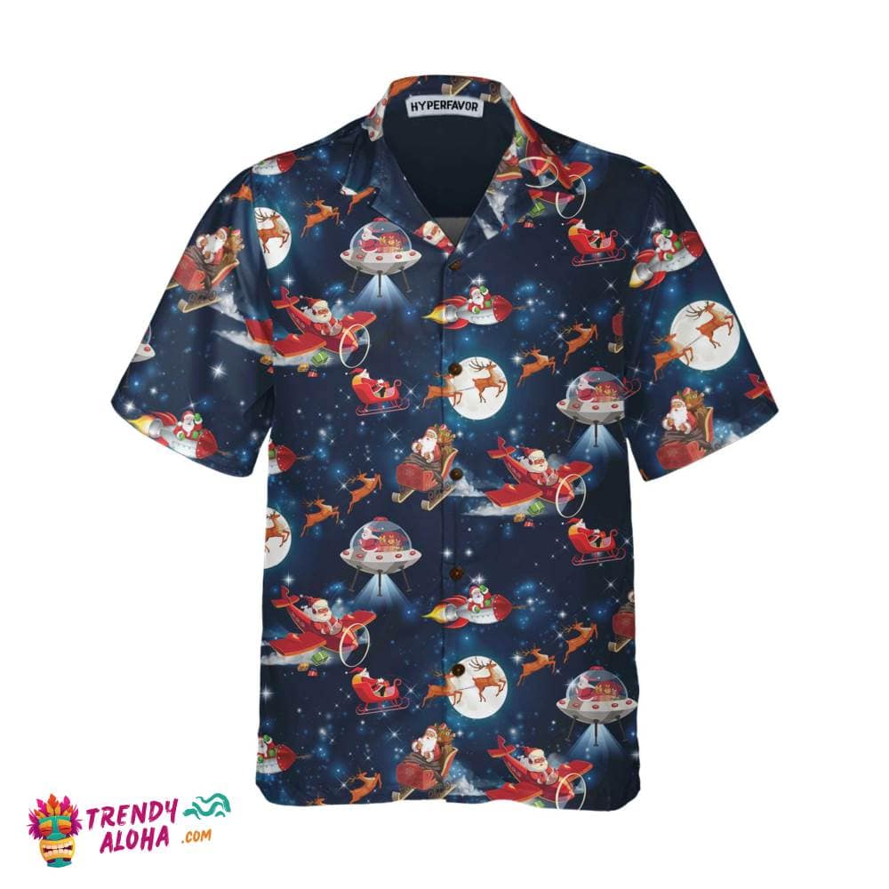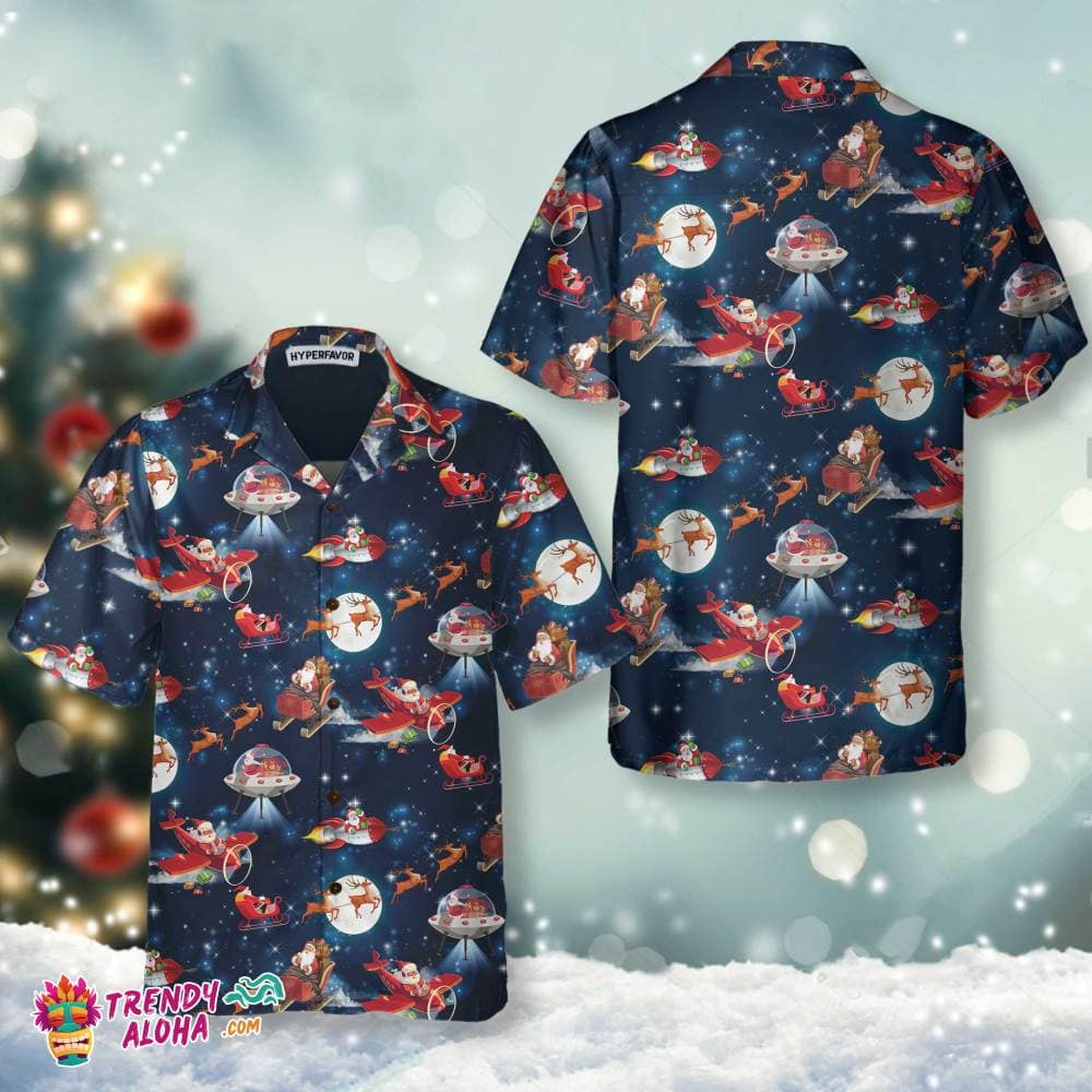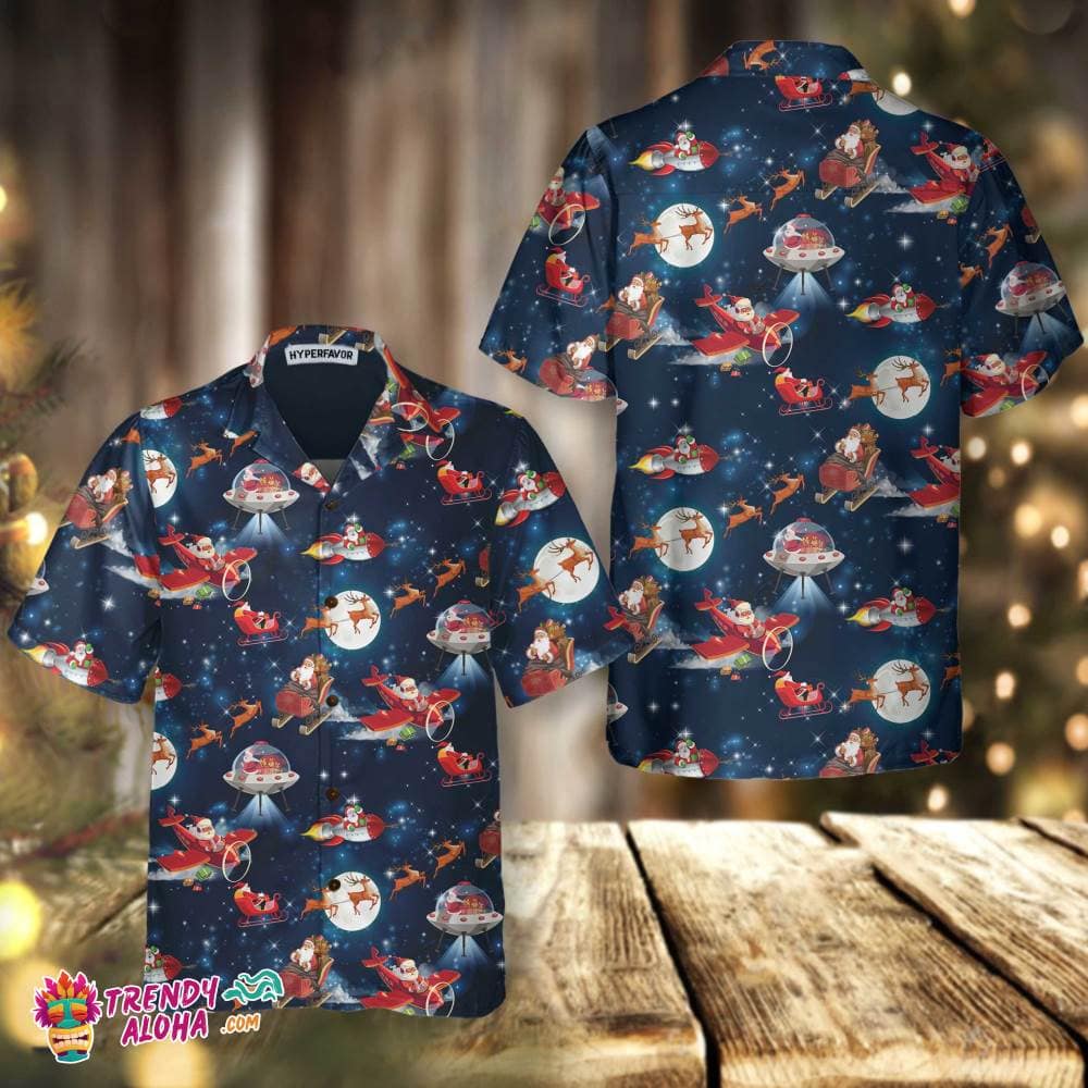 Christmas In Space Christmas Hawaiian Shirt With Santa Claus And Reindeer Pattern