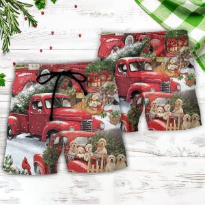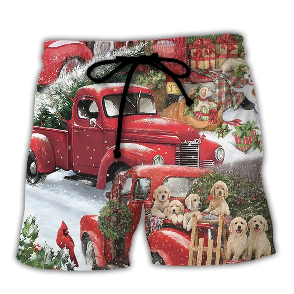 Christmas Red Truck With Xmas Tree And Little Puppy Trendy KLA Hawaiian Beach Shorts