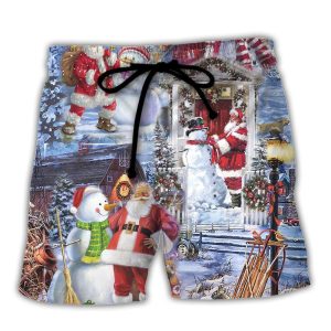 Christmas Santa And Snowman Happy Holiday Christmas Trendy KLA Hawaiian Beach Shorts