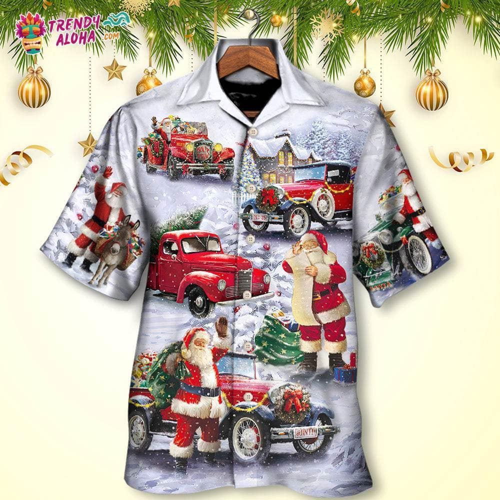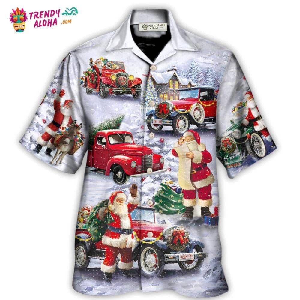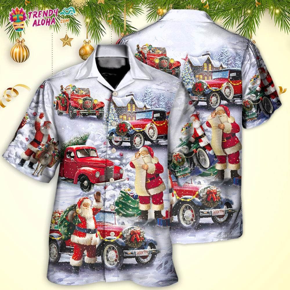 Christmas Santa Claus Funny Red Truck Gift For Xmas Painting Style Hawaiian Shirt – Trendy KLA