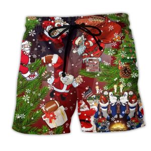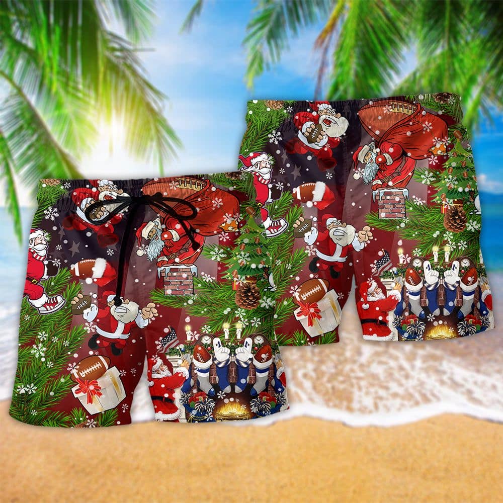 Christmas Santa Claus Is Big Fan Of American Football Trendy KLA Hawaiian Beach Shorts
