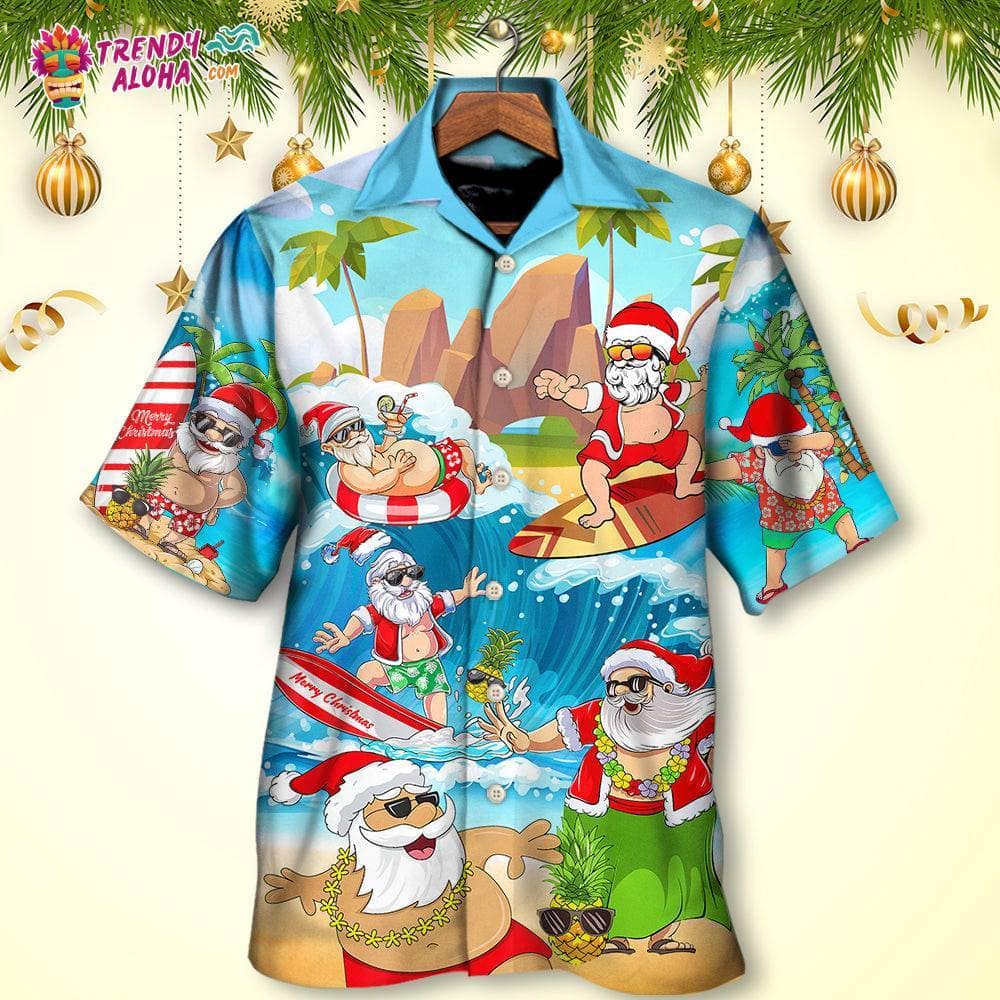 Christmas Santa Claus Play On The Beach Mele Kalikimaka Funny Hawaiian Shirt – Trendy KLA