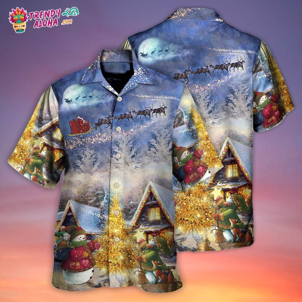 You’re viewing Christmas Santa Claus Reindeer Snowman Family In Love Gift Light Art Style Hawaiian Shirt – Trendy KLA.