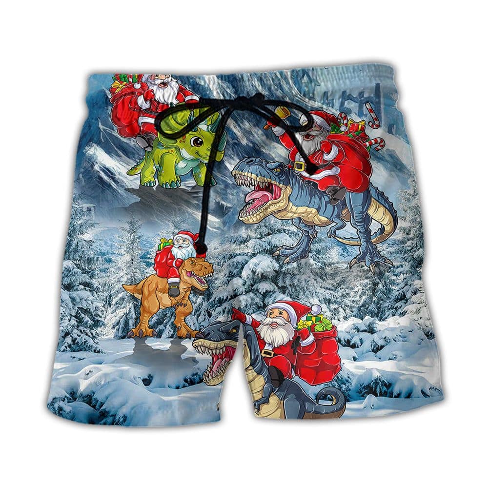 You’re viewing Christmas Santa Claus Riding Dinosaur Christmas Tree Gift Light Art Style Trendy KLA Hawaiian Beach Shorts.