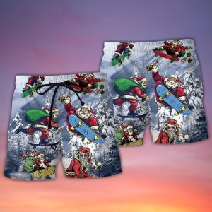 You’re viewing Christmas Santa Claus Skateboarding Snow Mountain Gift Light Art Style Trendy KLA Hawaiian Beach Shorts.