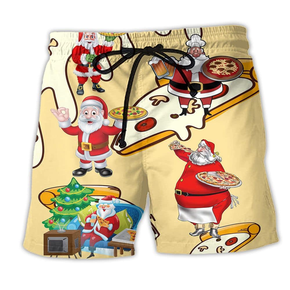 Christmas Santa Eating Pizza. It’s Yummy Trendy KLA Hawaiian Beach Shorts
