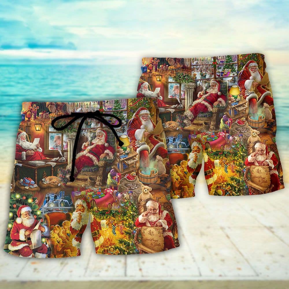 Christmas Santa Happy Holiday Season Of Joy Trendy KLA Hawaiian Beach Shorts