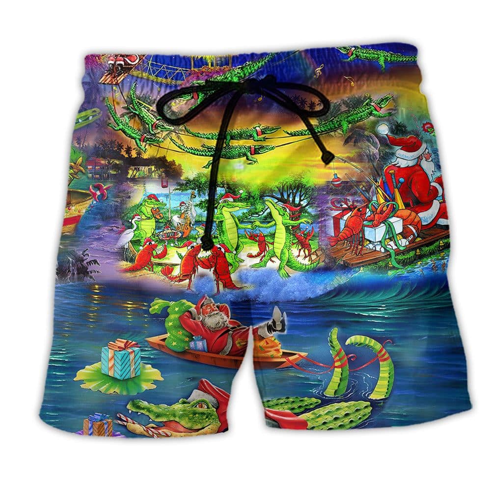 Christmas Santa Riding Alligator Trendy KLA Hawaiian Beach Shorts
