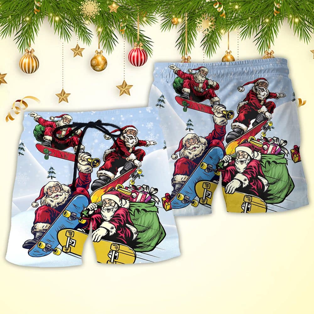 Christmas Santa Skateboard Snow Day Trendy KLA Hawaiian Beach Shorts
