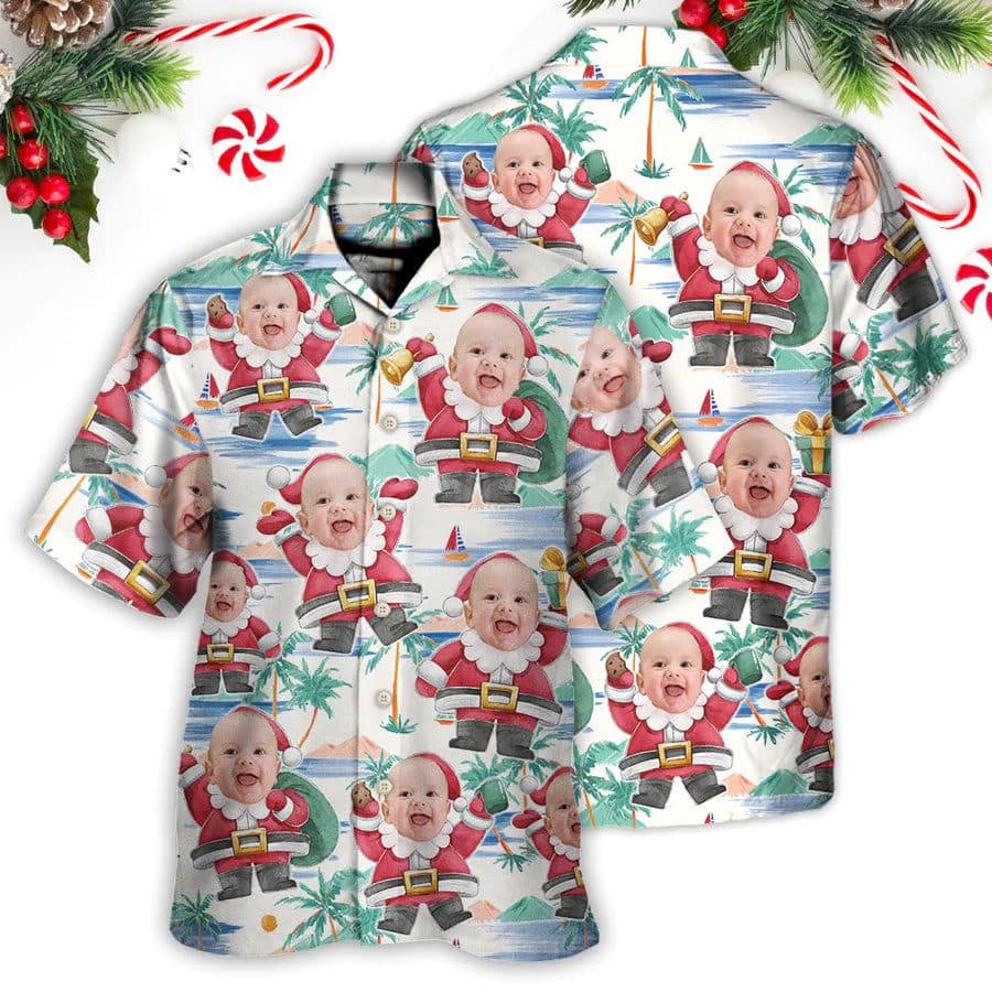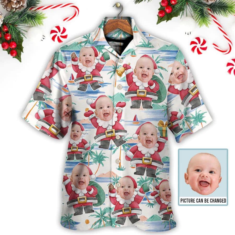 Christmas Santa Summer Beach Custom Photo Hawaiian Shirt