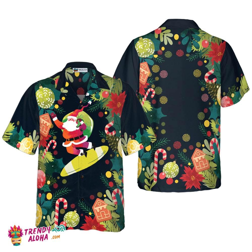 Christmas Santa Surfing Hawaiian Shirt, Christmas Shirts Short Sleeve Button Down Shirt For Men And Women