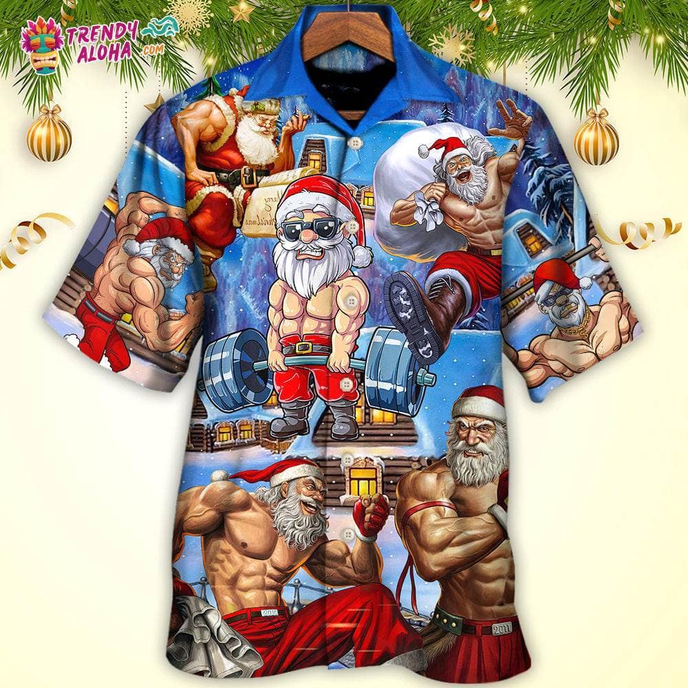 Christmas Santa Weightlifting Christmas Fitness Gym Hawaiian Shirt – Trendy KLA