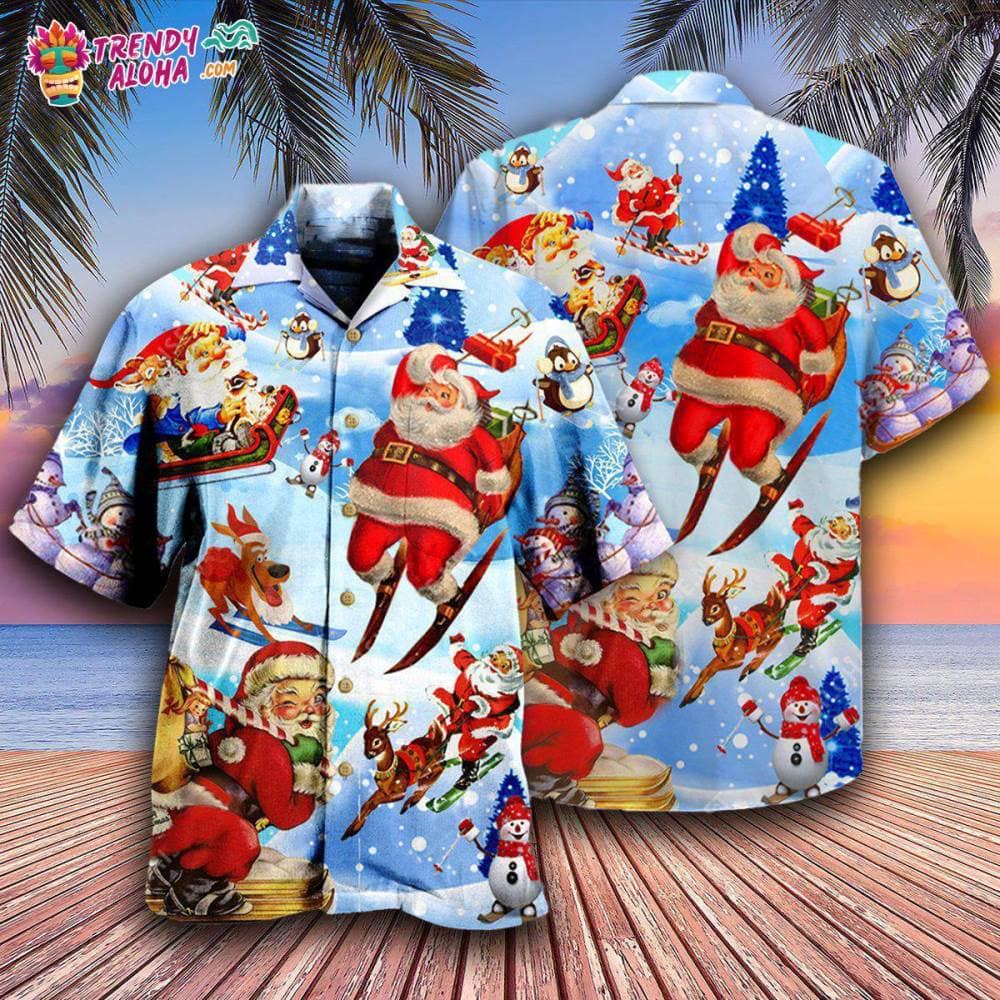 Christmas Skiing Santa Claus In Blue Hawaiian Shirt – Trendy KLA