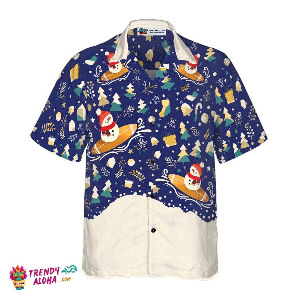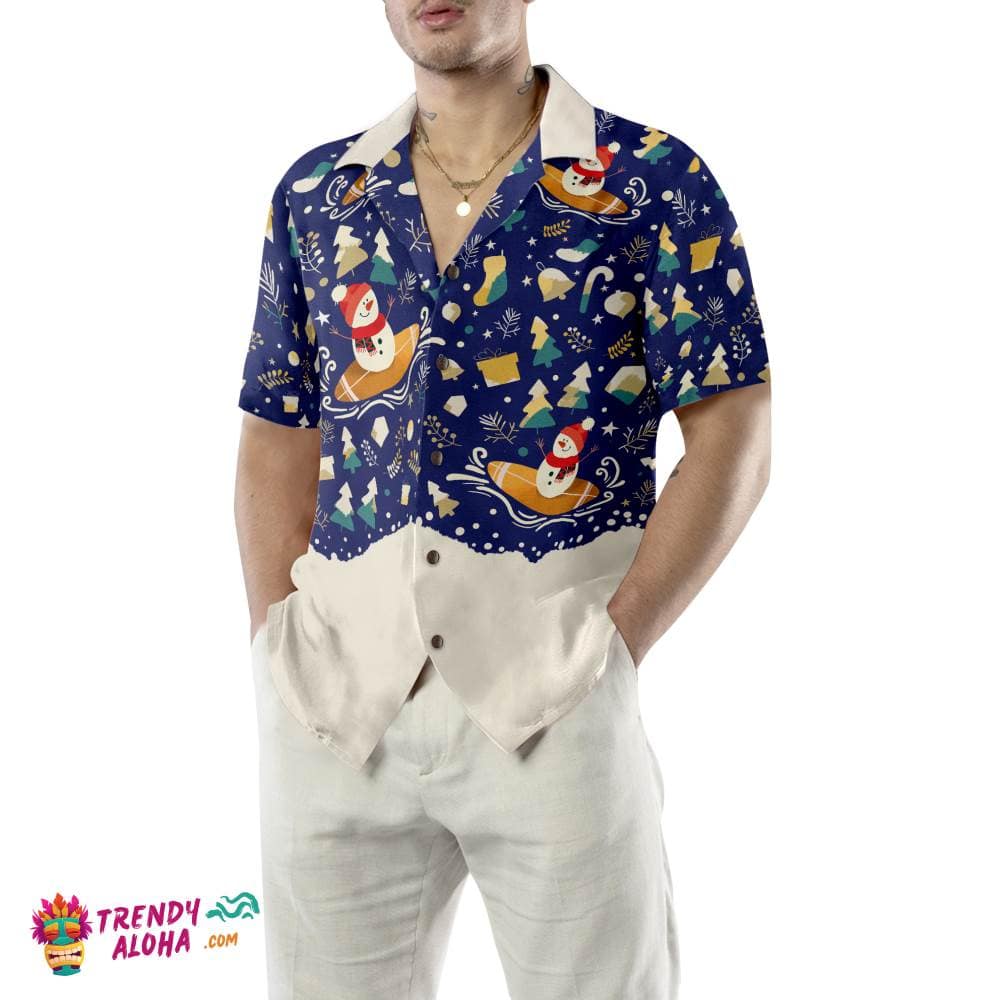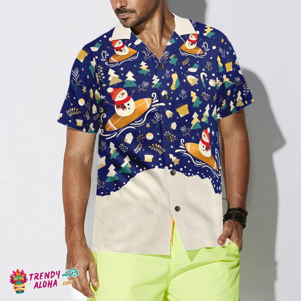 You’re viewing Christmas Snowman Surfing Hawaiian Shirt, Christmas Shirts Short Sleeve Button Down Shirt For Men And Women.