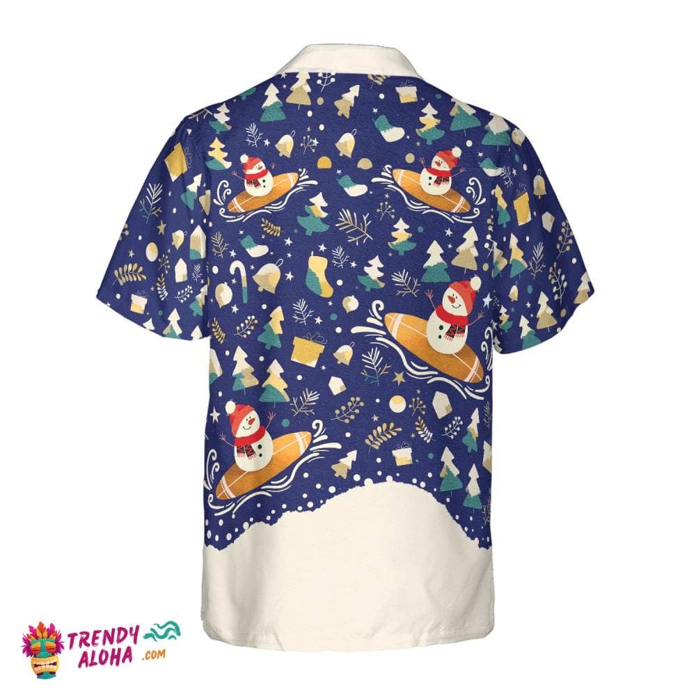 Christmas Snowman Surfing Hawaiian Shirt, Christmas Shirts Short Sleeve Button Down Shirt For Men And Women