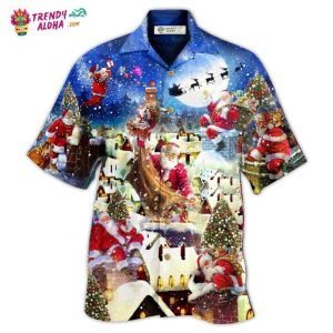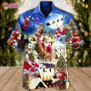 Christmas Up On Rooftop Santa’S Busiest Night With Reindeer Hawaiian Shirt – Trendy KLA