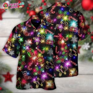 Christmas With Tree And Gift Cookies Gingerbread Man Neon Style Hawaiian Shirt – Trendy KLA