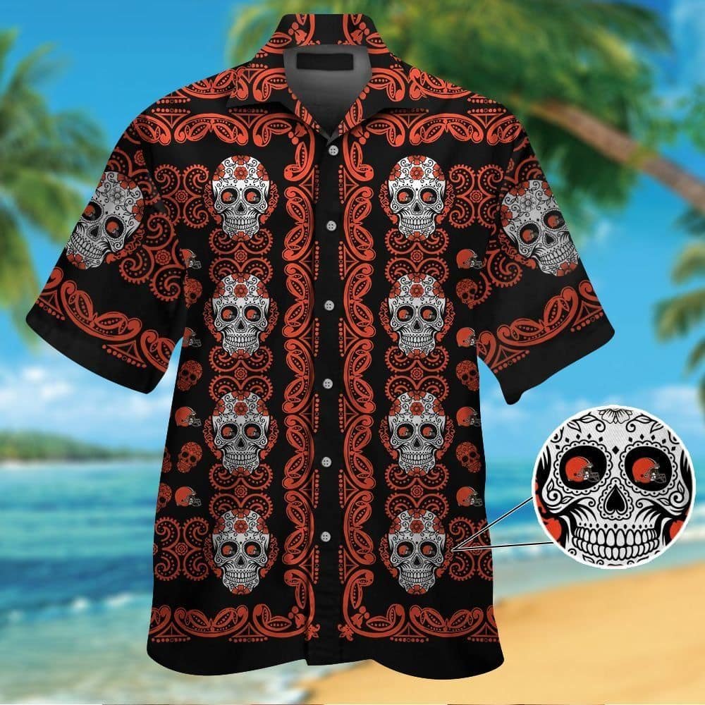 You’re viewing Cleveland Brownsskull Short Sleeve Button Up Tropical Hawaiian Shirt VER02.