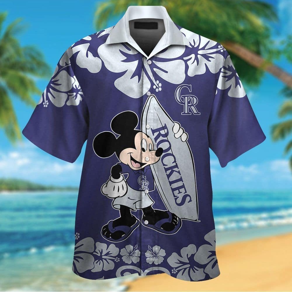 Colorado Rockies Mickey Mouse Short Sleeve Button Up Tropical Hawaiian Shirt